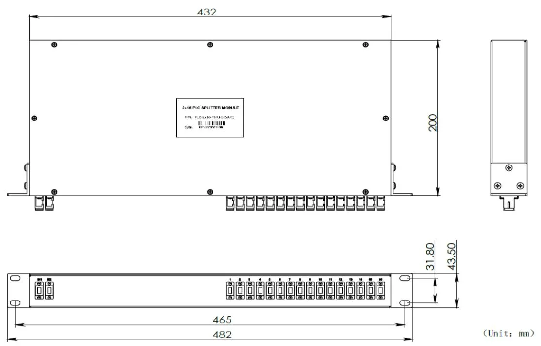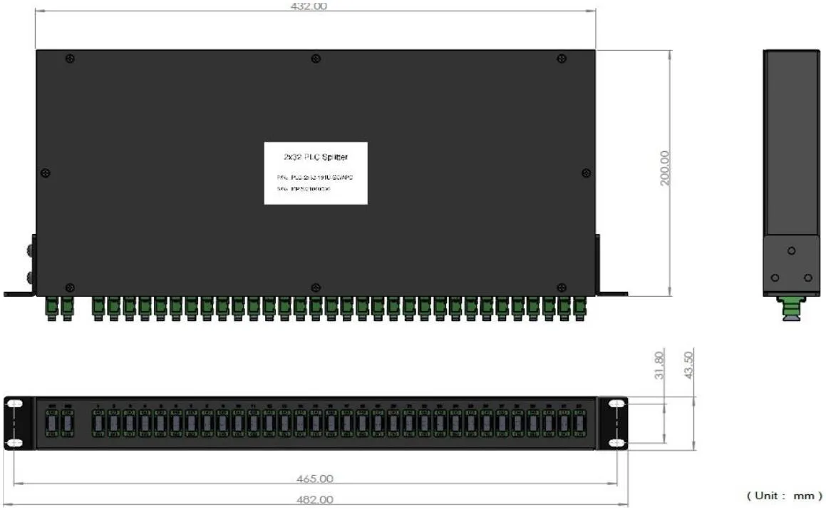 I-1x2 / 2x16/1 × 32 plc splitter fitter (1ru 19 "yohlobo lwentaba)