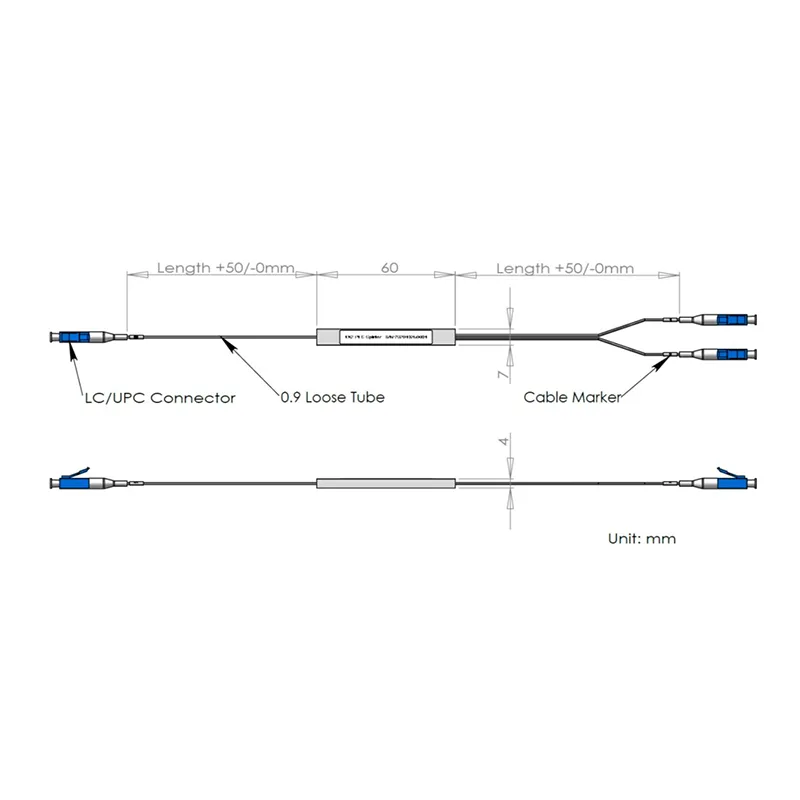 I-1 × 2 plc splitter tube ye-tube yentsimbi ye-60X7X4MM, nge-9001m i-900m i-900m, i-TIDE, i-LC / i-LC / i-chazingctor.